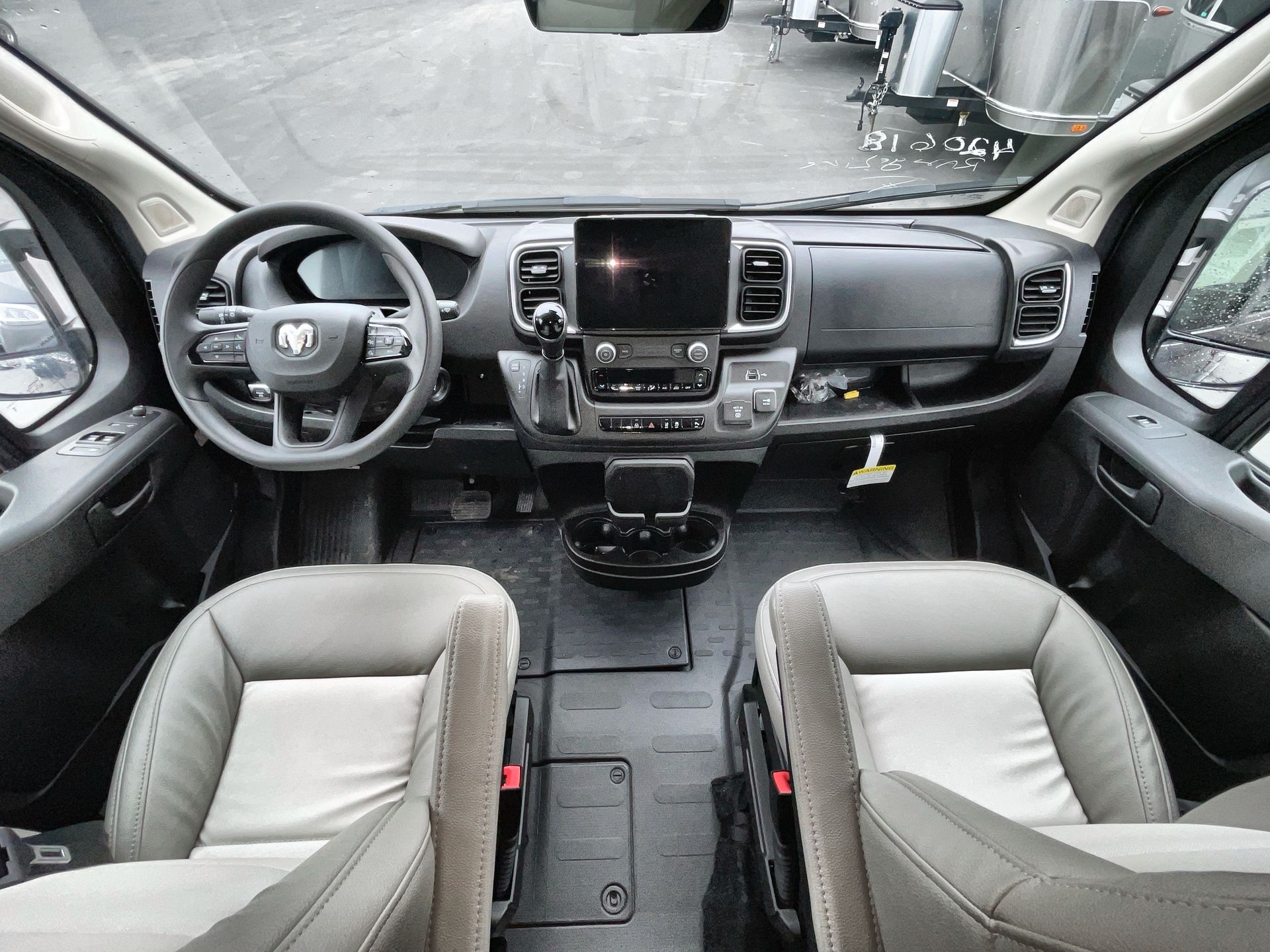 The 2025 Airstream Rangeline is a modern Class B motorhome designed to enhance your travel experiences. Built on the reliable RAM ProMaster® 3500 chassis, it features a fuel-efficient 3.6L Pentastar® V6 engine with 276 horsepower and a nine-speed automatic transmission, ensuring a smooth and responsive drive. Measuring approximately 21 feet in length, the Rangeline offers a compact yet spacious design, making it easy to maneuver through city streets and scenic byways alike. Its sleek exterior is complemented by practical features such as a 12-foot awning, providing shade and comfort during outdoor activities. Inside, the Rangeline boasts a thoughtfully designed interior that maximizes space and functionality. The flexible seating arrangement includes swiveling captain's chairs and a multi-adjustable, removable table, creating a comfortable area for dining, working, or relaxing. The galley is equipped with an all-electric refrigerator, a stowable induction cooktop, a microwave, and ample storage within soft-close, locking drawers, making meal preparation convenient and efficient. Sleeping accommodations are designed with comfort in mind. The rear features a foldable bed supported by a European suspension system, providing a restful night's sleep. For those needing additional sleeping space, an optional pop-top expands the sleeping capacity, offering a cozy area for two more passengers. The Rangeline's wet bath includes a shower, sink, and flush toilet, all within an easy-to-clean compact space, ensuring you have the comforts of home while on the road. Technology and safety are at the forefront of the Rangeline's design. The cockpit features a 10.1-inch Uconnect® touchscreen with voice command capability, Apple and Android compatibility, and in-dash wireless cell phone charging. Safety features include automatic headlamps with high-beam control, crosswind assist, drowsy driver detection, electronic stability control, and multiple safety impact airbags, providing peace of mind on every journey. With its combination of style, comfort, and modern features, the 2025 Airstream Rangeline invites you to explore the world without sacrificing the comforts of home. Embark on your next adventure with confidence in this exceptional motorhome.