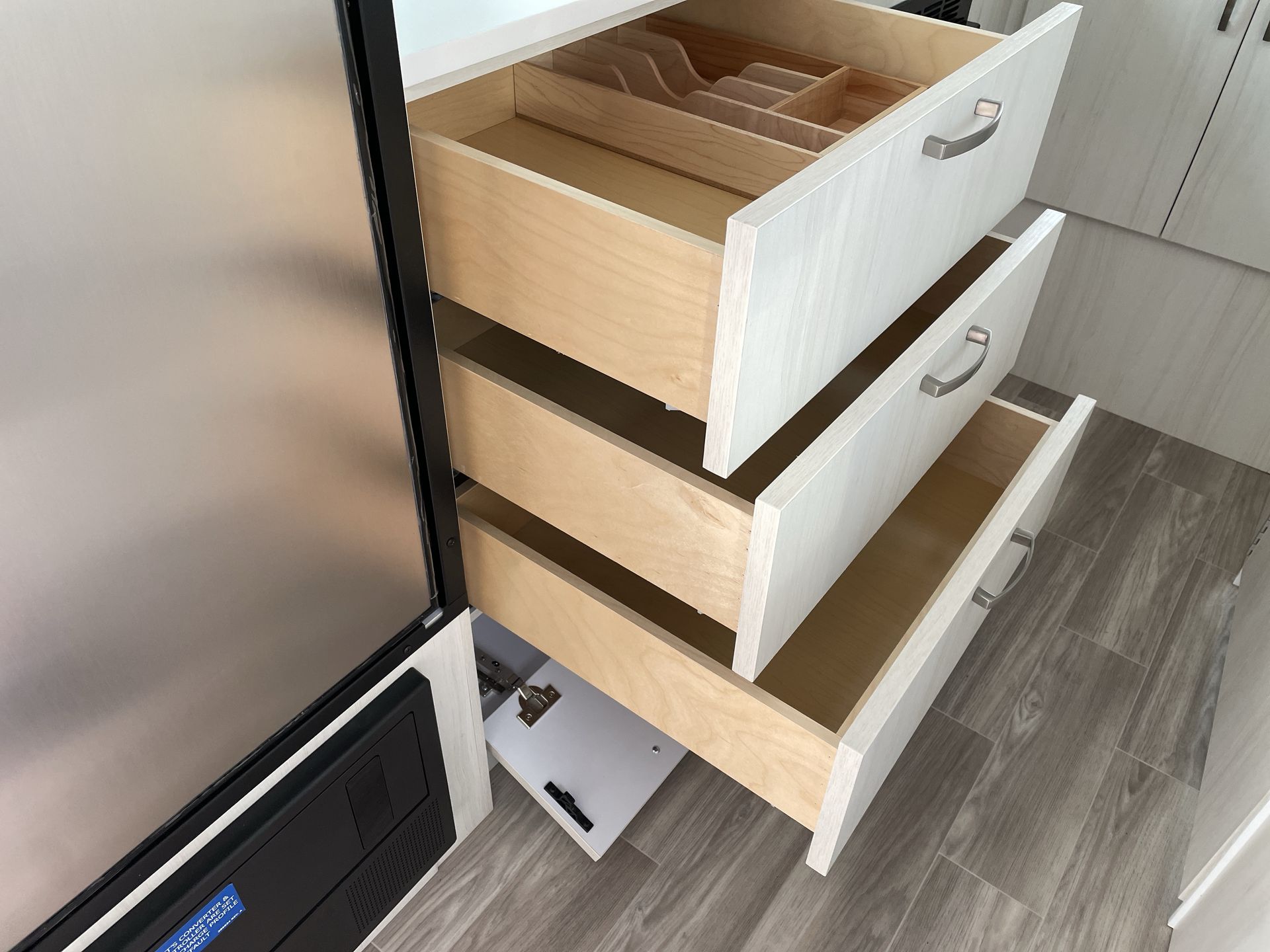 Airstream has equipped the Bambi 20FB with advanced climate control systems, ensuring a pleasant environment no matter the weather outside. Additionally, the trailer includes ample storage options, with cleverly hidden compartments and cabinets that can store all your essentials and travel gear.