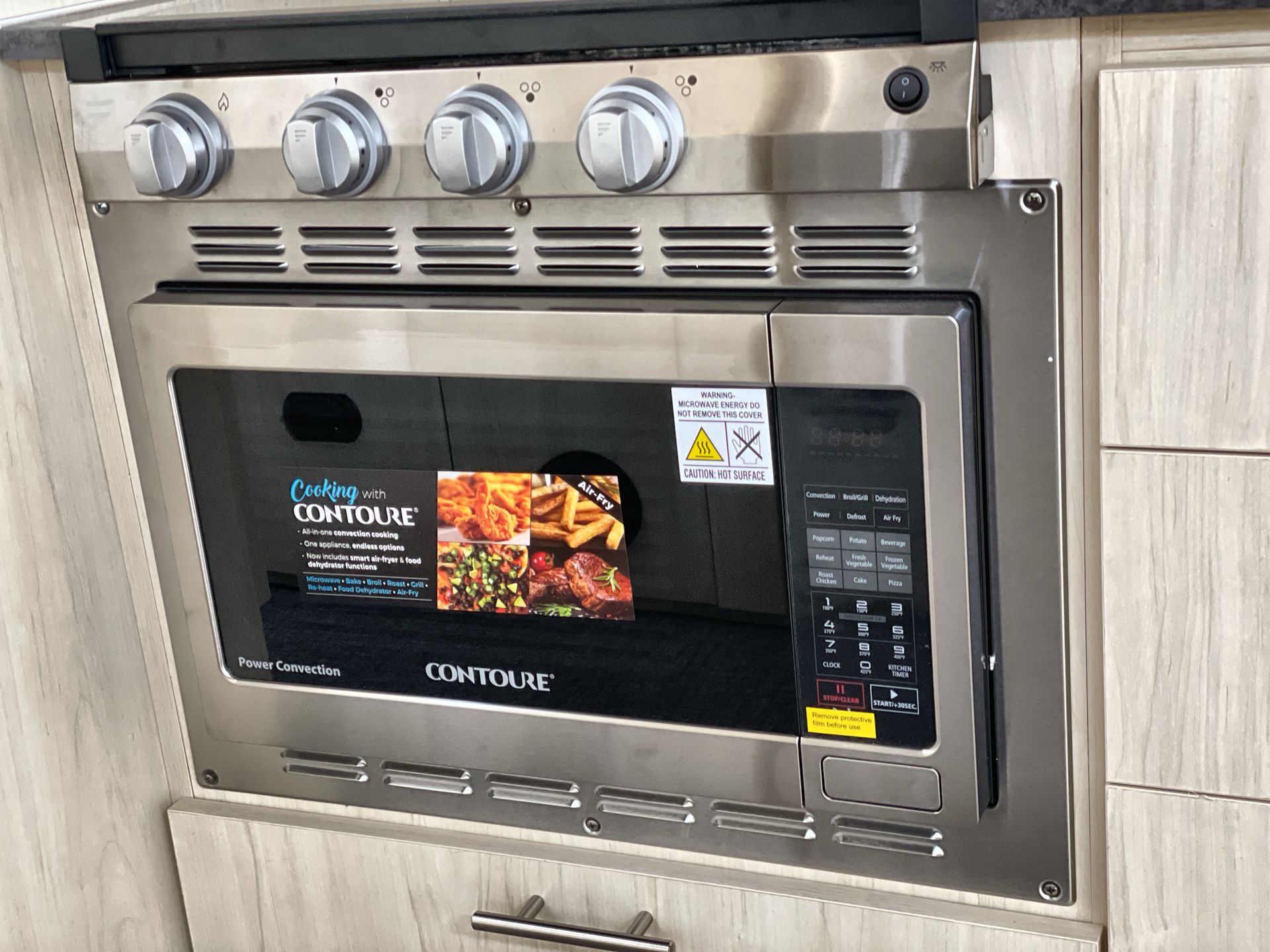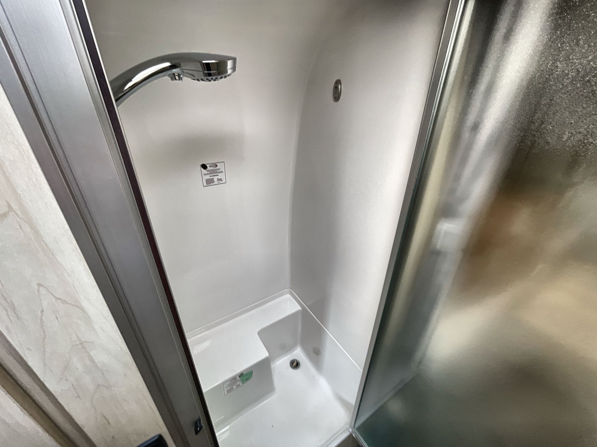 Inside, the front bedroom features twin beds with memory foam mattresses, providing flexibility and restful sleep for travelers. Ample storage is available through overhead compartments and wardrobes, ensuring all essentials are neatly organized.