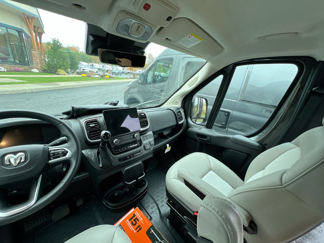 The 2025 Airstream Rangeline is a modern Class B motorhome designed to enhance your travel experiences. Built on the reliable RAM ProMaster® 3500 chassis, it features a fuel-efficient 3.6L Pentastar® V6 engine with 276 horsepower and a nine-speed automatic transmission, ensuring a smooth and responsive drive. Measuring approximately 21 feet in length, the Rangeline offers a compact yet spacious design, making it easy to maneuver through city streets and scenic byways alike. Its sleek exterior is complemented by practical features such as a 12-foot awning, providing shade and comfort during outdoor activities. Inside, the Rangeline boasts a thoughtfully designed interior that maximizes space and functionality. The flexible seating arrangement includes swiveling captain's chairs and a multi-adjustable, removable table, creating a comfortable area for dining, working, or relaxing. The galley is equipped with an all-electric refrigerator, a stowable induction cooktop, a microwave, and ample storage within soft-close, locking drawers, making meal preparation convenient and efficient. Sleeping accommodations are designed with comfort in mind. The rear features a foldable bed supported by a European suspension system, providing a restful night's sleep. For those needing additional sleeping space, an optional pop-top expands the sleeping capacity, offering a cozy area for two more passengers. The Rangeline's wet bath includes a shower, sink, and flush toilet, all within an easy-to-clean compact space, ensuring you have the comforts of home while on the road. Technology and safety are at the forefront of the Rangeline's design. The cockpit features a 10.1-inch Uconnect® touchscreen with voice command capability, Apple and Android compatibility, and in-dash wireless cell phone charging. Safety features include automatic headlamps with high-beam control, crosswind assist, drowsy driver detection, electronic stability control, and multiple safety impact airbags, providing peace of mind on every journey. With its combination of style, comfort, and modern features, the 2025 Airstream Rangeline invites you to explore the world without sacrificing the comforts of home. Embark on your next adventure with confidence in this exceptional motorhome.