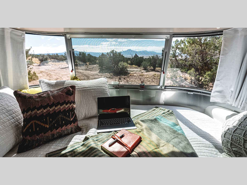 You will love cooking in the galley that includes a stainless steel gas stove with cast-iron burners, a black Moen faucet, and a stainless steel sink. The panoramic windows allow natural light in, and the seating will ensure your comfort. There is plenty of storage for all your belongings, plus Quietstream A/C and heating for the perfect temperature year around. A pillow top memory foam mattress will provide a great night's rest each night, and full bath amenities on board mean you won't have to use the camp's facilities.