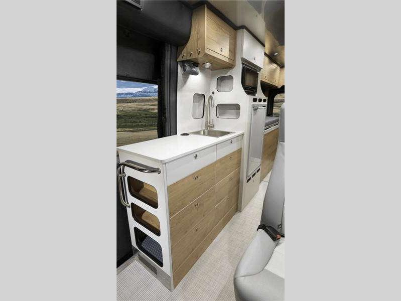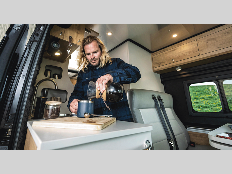 The Rangeline touring coach by Airstream lets you travel in complete comfort. This Class B features a fuel-efficient 3.6L Pentastar V6 engine with 276 horsepower and a 9-speed transmission to power your many excursions, and the added safety features will give you peace of mind as you travel the roads.