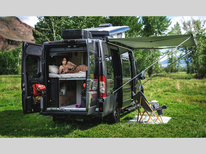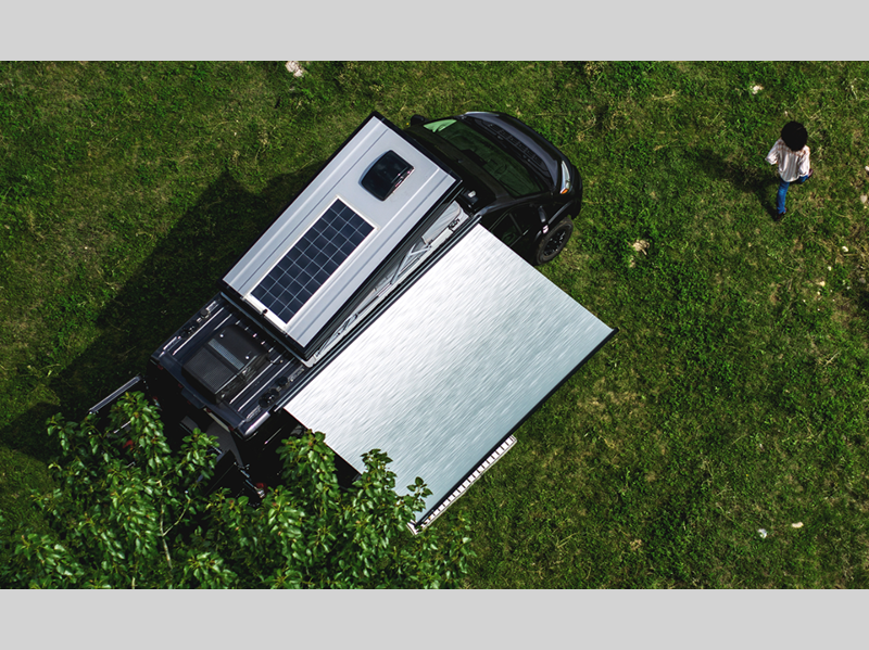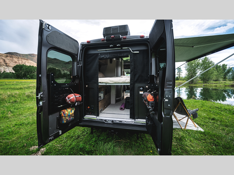 This vehicle is designed to make things easy for you, with flexible storage including cubbies throughout and a garage area with MOLLE panels on the rear door to keep your gear organized. Interior convenience includes a full wet bath and soft-close drawers, with European-inspired design touches throughout. Outside there's an awning with patio light and a screen door to bring the outside in.