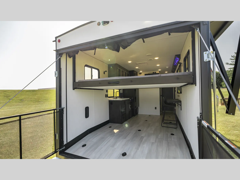 The Cherokee Wolf Pack toy haulers by Forest River are your ticket to fun and adventure. These fifth wheels and travel trailers feature an 8' 6" wide-body design so you can easily bring along the side-by-side, bikes, kayaks, and more!